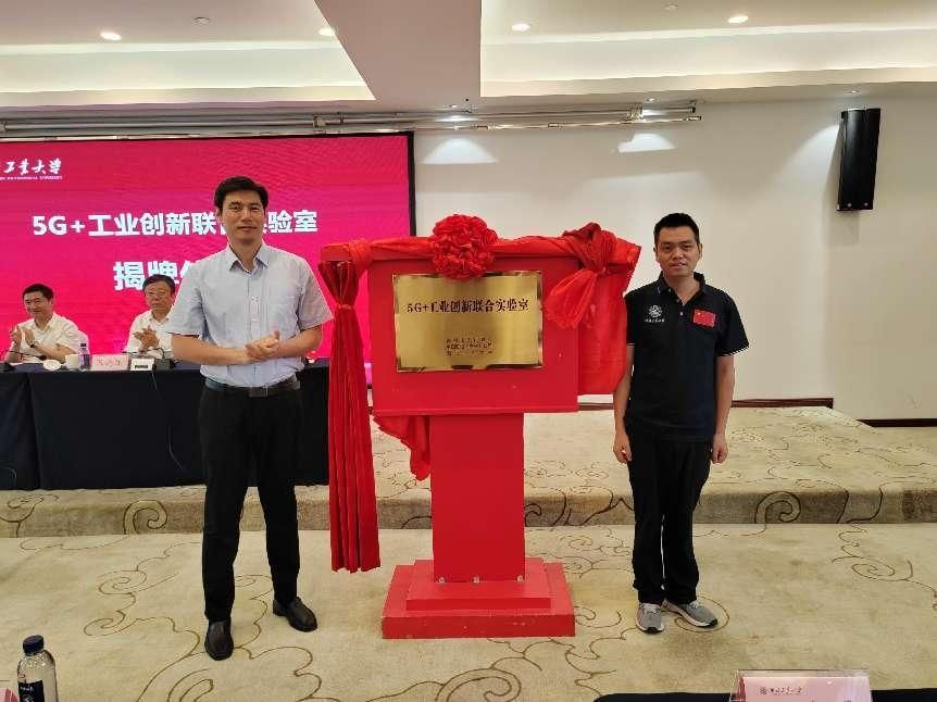 院长助理陶凯为“5G+工业创新联合实验室”揭牌。