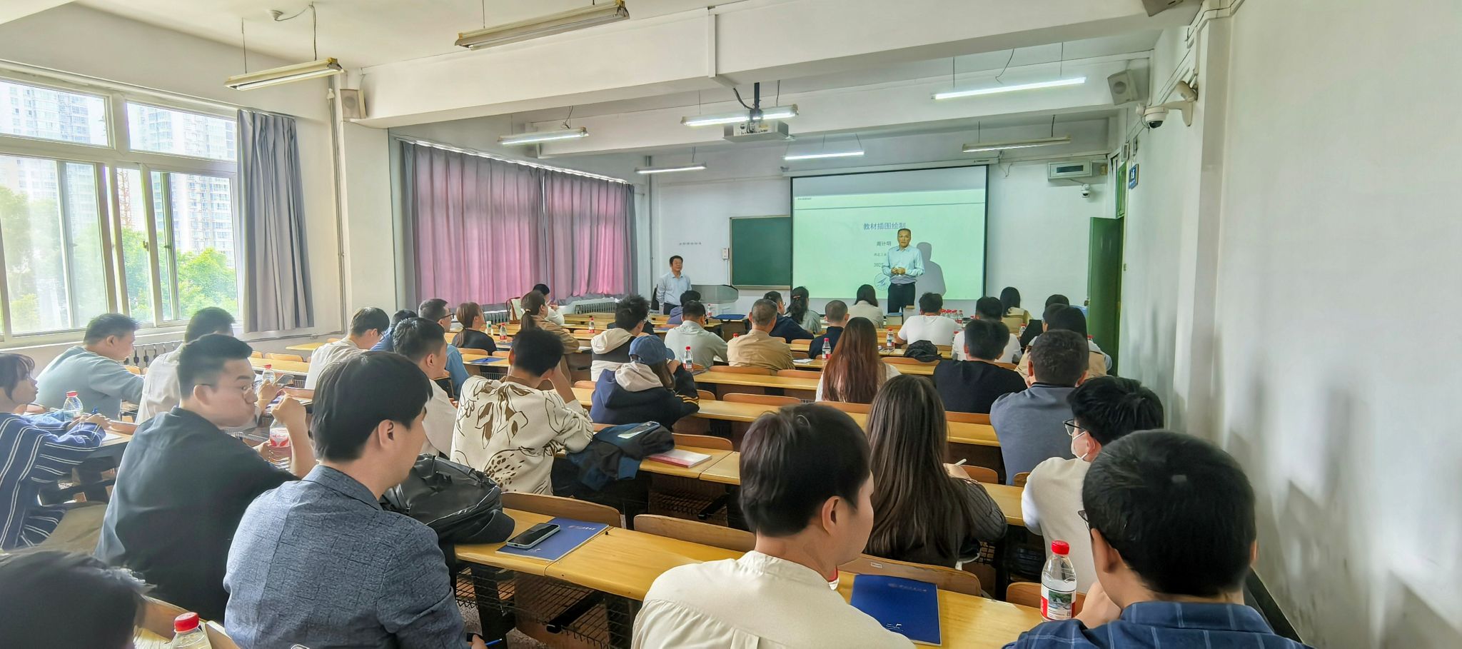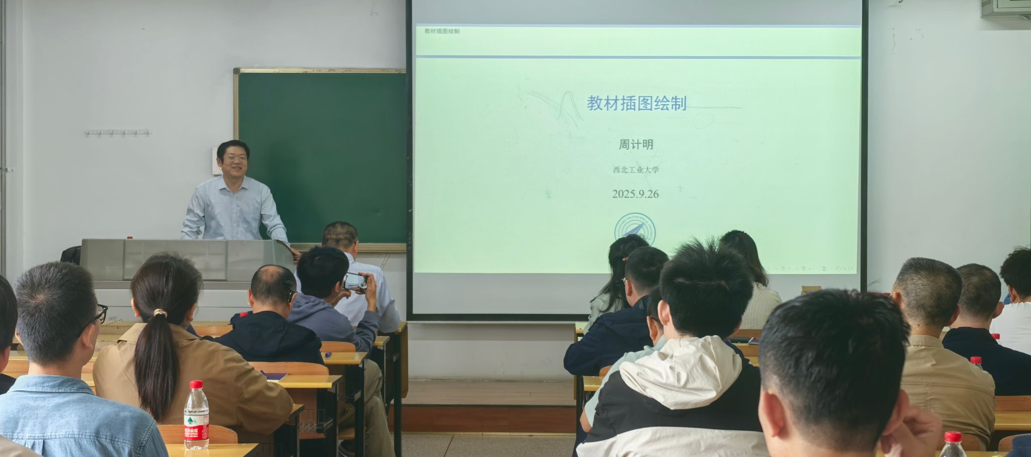 周计明教授作《教材插图绘制》专题报告。教务部、学校申报教材建设的教师、学院教学院长常智勇、青年教师、学院教学管理人员共100余人参加了培训会。培训会由常智勇副院长主持。