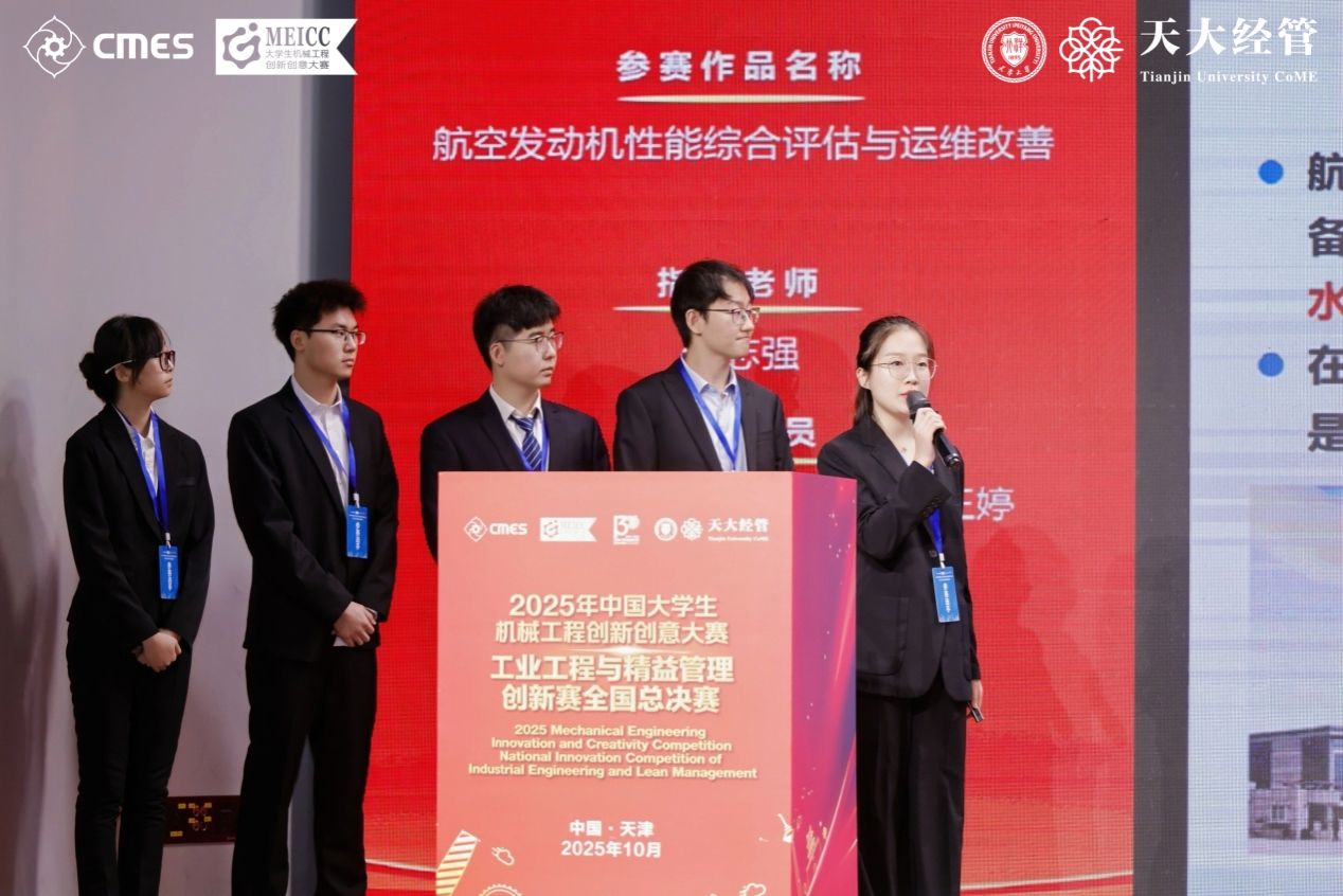 研究生王婷同学作为获奖选手代表发表感言。她对大赛执委会、各位评委和指导老师表达由衷的感谢,并表示“本次大赛为参赛师生提供了广阔的学习与交流平台,使大家在创新实践中深刻体会到工业工程的价值与魅力。在参赛过程中,团队不仅提升了跨专业协作能力与系统思维水平,更加坚定了服务国家高端制造业发展、投身航空强国建设的理想信念。”