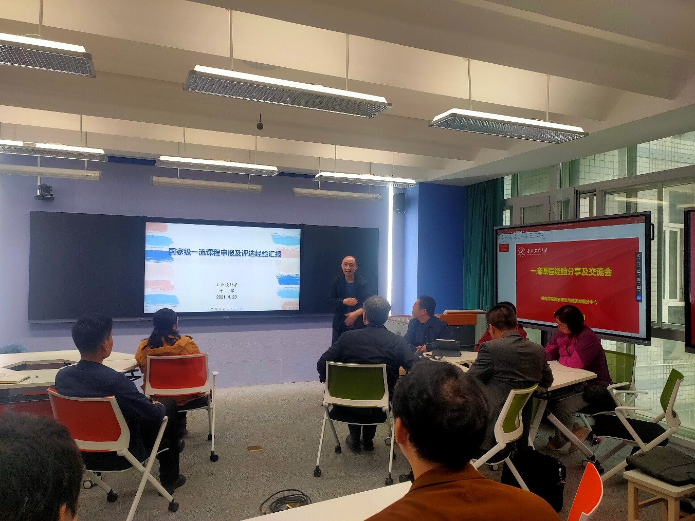 叶军副教授代表线上一流课程-“机械制图”团队,分享了机械制图课程基本情况、线上一流课程建设及申报过程、以及其参加国家级线上线下混合式一流课程评审过程的体会。