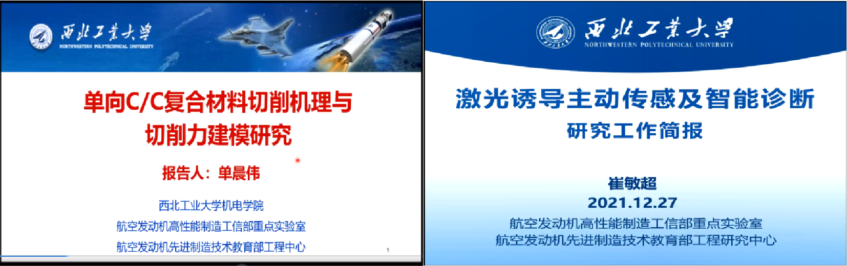 校长助理张开富教授首先代表学校致辞,并对与会专家和同行的支持表示感谢。航空发动机高性能制造重点实验室主任姚倡锋教授做了实验室年度工作汇报,从科研项目、代表性成果、队伍建设与人才培养、开放交流与平台建设等几个方面对实验室2021年度的主要工作进行了总结汇报。重点实验室骨干教师代表单晨伟教授针对非匀质复合材料切削机理问题,作了题为“单向C/C复合材料切削机理与切削力建模研究”的学术报告;崔敏超教授针对面向构件性能的制造过程在线监测问题,作了题为“激光诱导主动传感方法与智能诊断”的学术报告,两个学术报告紧扣前沿,内容详实,得到了与会专家同行的一致好评。李应红院士充分肯定了实验室本年度的主要工作,认为实验室在各个研究方向上取得了很大的发展,并对实验室下一步发展规划给出了建议;而后,学术委员们分别就实验室研究内容、人才培养和下一步发展规划等议题进行了充分讨论,提出了建设性意见。