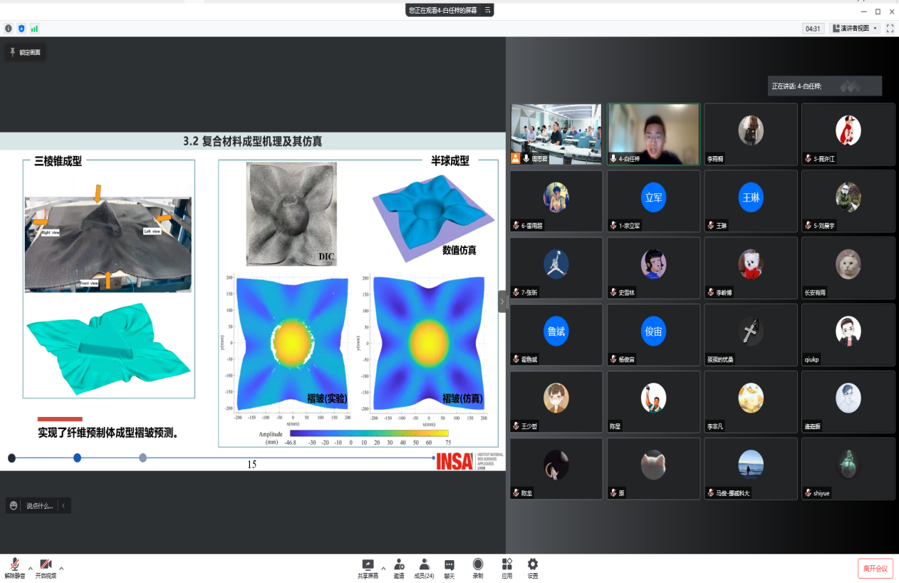 随后,常洪龙、张映锋先后介绍了本次论坛的八位汇报人,他们聚焦国际学术前沿和学科热点,涉及机械振动、机器人技术、复合材料、增材制造多个学科领域,在科学研究、国际交流方面表现突出,初露锋芒。通过学者们精彩报告,促进了学术成果的交流,也展示了新时代青年的活力与创新能力。