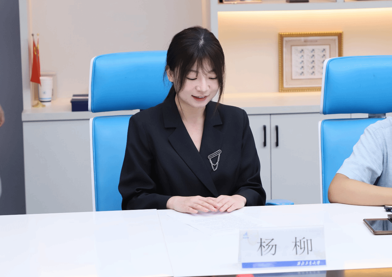 的学生代表发言。学生代表杨柳表达了对航空工业万里的崇敬之情,并对企业的招聘宣讲活动表示热烈欢迎,同时也对航空工业万里的奖学金捐赠表示衷心的感谢,并承诺将更加努力学习,为社会作出更大的贡献。