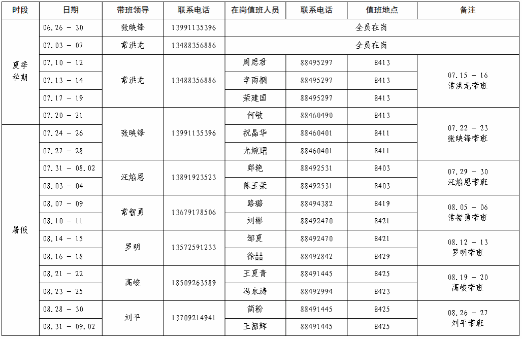 香港三级片 2023年暑假(夏季学期)值班安排表