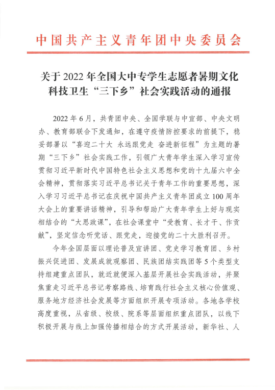 为深入总结交流经验,选树典型宣传,推动引领示范,激励广泛参与,发挥育人实效, 2022年10月12日,中国共产主义青年团中央委员会发文,通报表彰2022年全国大中专学生志愿者暑期文化科技卫生“三下乡”社会实践活动表彰结果。香港三级片