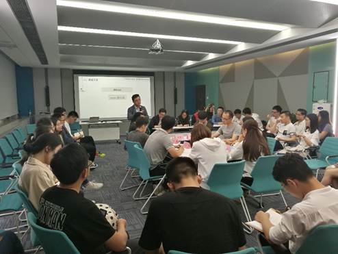 活动前,老师们先将在场的同学分为面试者、面试官和观察者三种角色,并讲述了活动的规则以及每一种角色各自的任务。活动开始拿到题目后,面试者五分钟时间准备,接下来每位一分钟发言,最后是十五分钟的小组讨论时间,形成统一意见。各抒己见,畅所欲言,思想火花的激烈碰撞无疑是这次课程的一大亮点;随后面试官和观察者各选出了代表进行了发言,对之前同学的表现做出了点评。