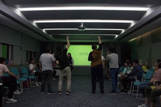 之后的你比我猜小游戏,各组派出心有灵犀的三人,更是动作各异、笑料不断。猜字游戏,研会的新生们机敏异常,争先恐后的占领抢答权,拔的先机的同学竟无一猜错,真是不给对手留一丝机会,在最后的猜字终极比拼中,漂亮的小姐姐巾帼不让须眉,大声喊出了这次猜字的五字组合,心无界,家无垠:“研会欢迎你!”