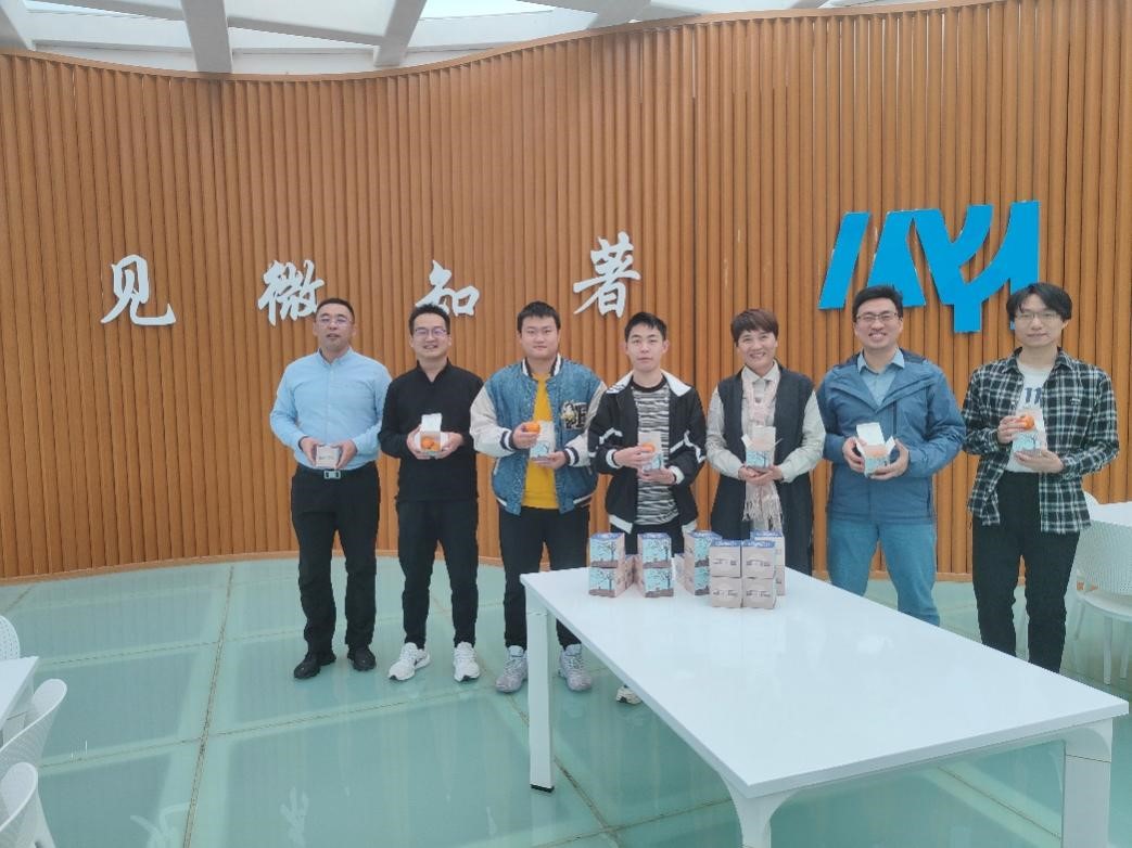 学生党支部代表向学研一体化实验教学中心支部老师赠送柿子