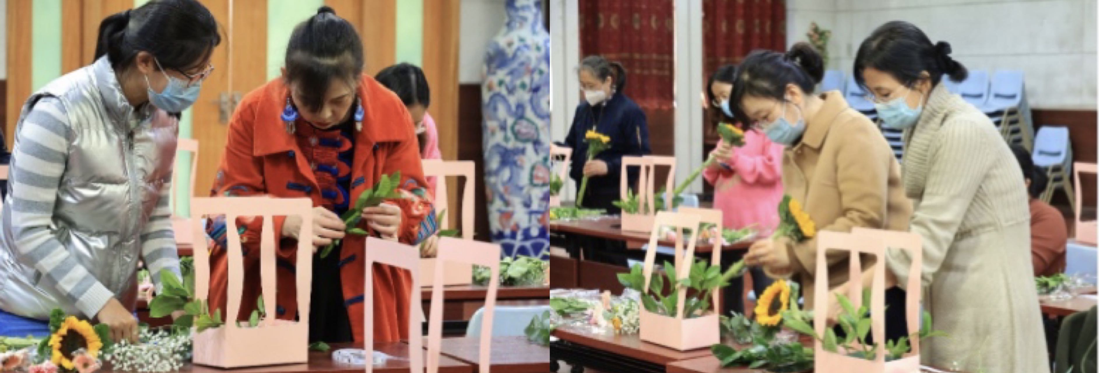 举办了庆祝“三八”国际妇女节“迎春插花”主题庆祝活动。活动于3月7日在健翔楼多功能活动厅举办。根据常态化疫情防控要求,为进一步保障教职工身体健康,本次活动学院工会按照一人一桌间隔1米提前准备活动场地,并要求所有参与教工均需佩戴口罩。
