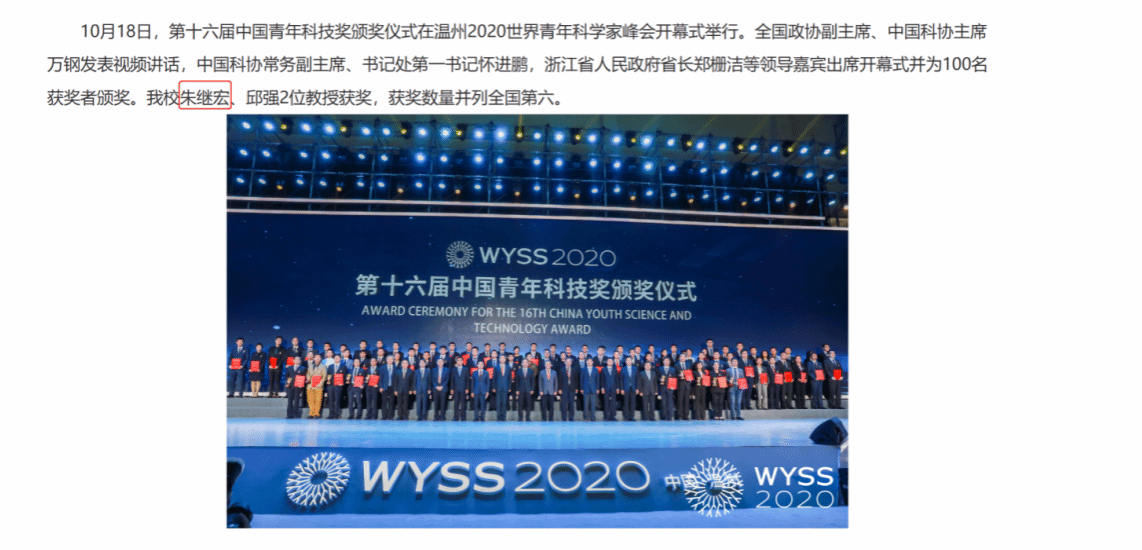 朱继宏教授荣获第十六届中国青年科技奖