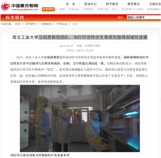 5.4.6【中国聚合物网】汪焰恩教授团队: 3D打印活性仿生骨研究取得突破性进展
