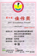 2019年 | 优秀奖 | 付晓军 | 刘更 | 行星滚柱丝杠副啮合与运动特性的理论与实验研究 |
