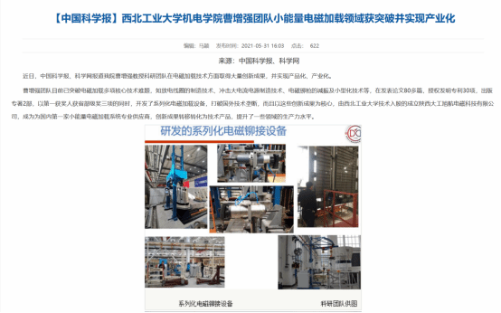 5.4.4【中国科学报】 香港三级片 曹增强团队小能量电磁加载领域获突破并实现产业化