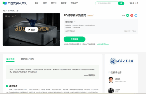 1.22汪焰恩《3D 打印技术》和产乐华《机械制造基础》MOOC 课程获批国家精品在线开放课程