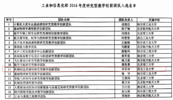 1.21齐乐华、马炳和团队入选工业和信息化部2016年度“研究型教学创新团队”