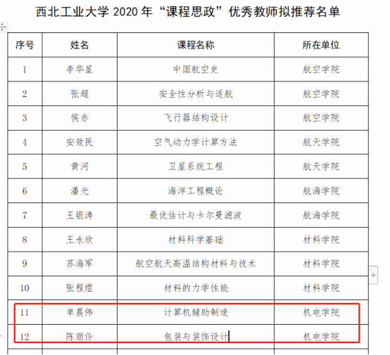 2.7单晨伟、陈丽伶两位老师入选香港三级片 2020年“课程思政”优秀教师拟推荐名单