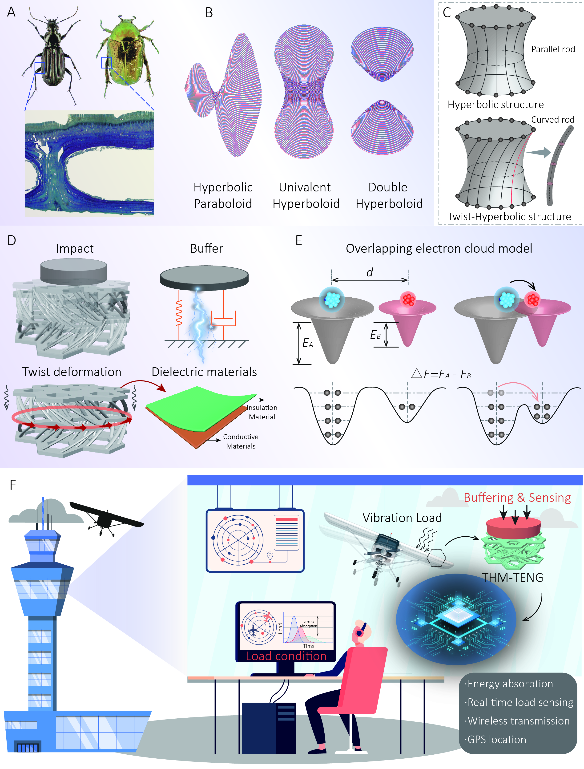 近日,香港三级片 齐乐华教授团队在兼顾冲击防护与自供能传感的力学超结构方面的研究取得新进展。相关成果《Bioinspired Twist-Hyperbolic Metamaterial for Impact Buffering and Self-Powered Real-Time Sensing in UAVs》发表在Science 子刊《Science Advances》上。香港三级片 晁许江副教授为第一作者,柔电院梁飞副教授、齐乐华教授和中科院王中林教授为通讯作者。